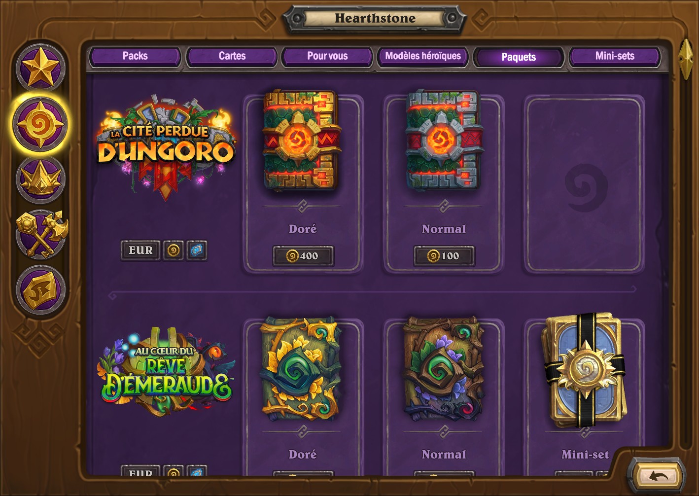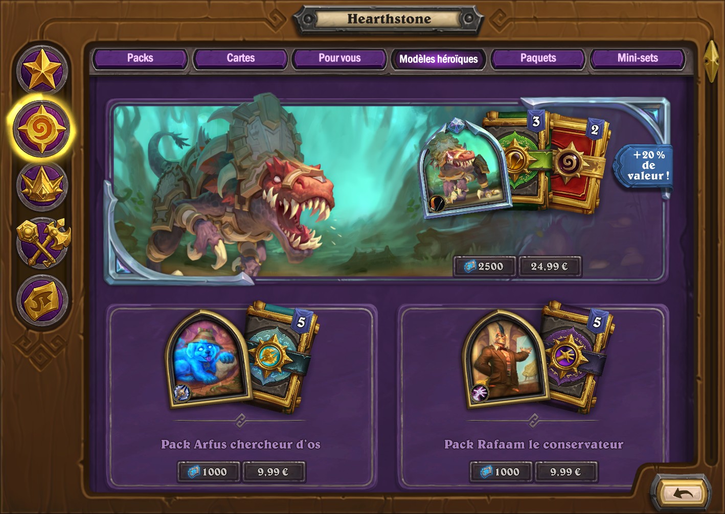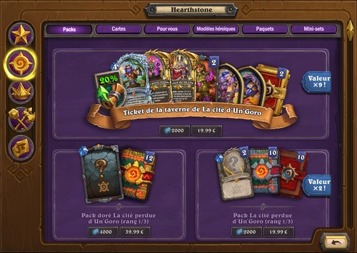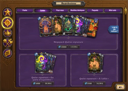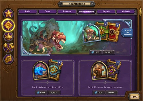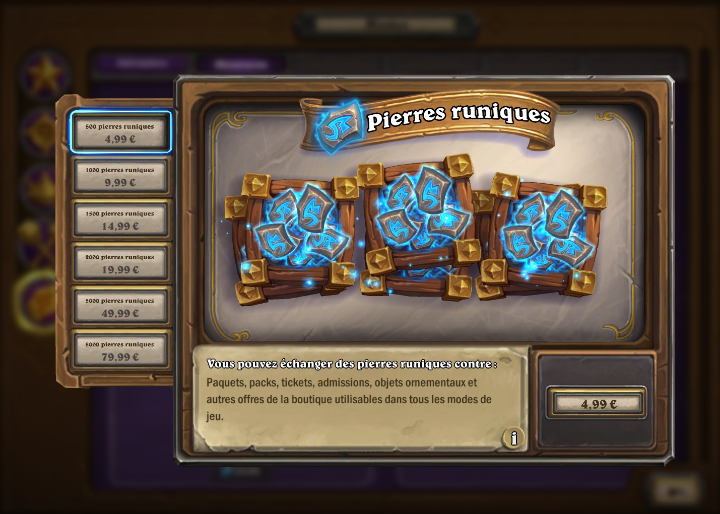 Pour obtenir de nouvelles cartes, soit on est patient et on accumule des pièces d'or en gagnant des parties et en réalisant des quêtes (100 p.o. le paquet de 5 cartes), soit on est riche et on achète directement des paquets de cartes dans la boutique avec sa carte bleue (2,99 € pour deux paquets de 5 cartes), on peut aussi acheter des "pierres runiques" qui sert de monnaie virtuelle dans le jeu...